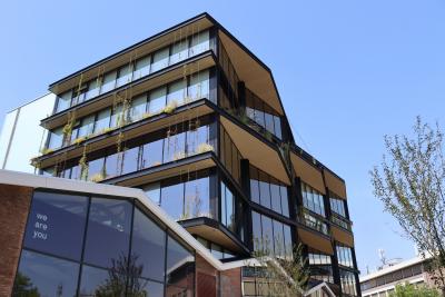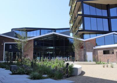 Of het nu gaat om de eerste voorjaarszon of verkoelende schaduw op een zomerse dag — dit is een plek die met de seizoenen mee beweegt. Het groen uit het pocketpark loopt bovendien subtiel door langs de gevels van het kantoorgebouw. Het verticale groen vormt zo een natuurlijke brug tussen gebouw en buitenruimte.