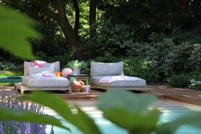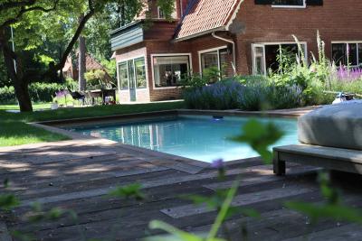 Het is echt een familietuin, waar iedereen welkom is en samen genieten van bijv. een frisse duik in het zwembad.