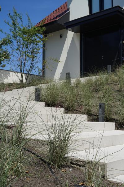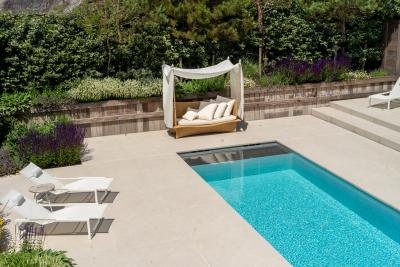 Tevens is er van de gelegenheid gebruik gemaakt om ook de entree te verfraaien met dezelfde terrastegels als rondom het zwembad, ook hierdoor meer eenheid in de tuin en een chique representatieve entree.