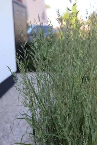 Ook de voorzijde heeft een totale metamorfose ondergaan, de basaltsplit oprit is veranderd in een tuin, met oprit, entree van de woning en plantvakken. De verharde oppervlakken zijn grotendeels uitgevoerd in een licht kleur grind.