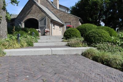 De entree van de woning was enigszins wat verscholen, maar door de trapelementen richting de entree is er een duidelijke hoofdroute richting de voordeur. Alleen dit tuingedeelte is al een `warm welkom`.