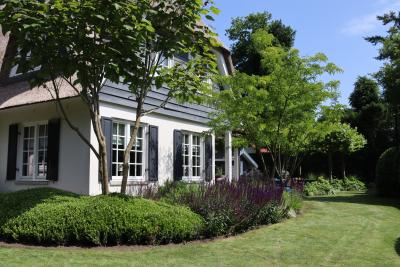 Ook rondom de woning is goed nagedacht over comfort en beleving. Meer boomheesters zorgen voor een rijkere groenbeleving vanuit de woning en dragen bij aan natuurlijke verkoeling op warme dagen. Schaduw, privacy én visuele rust komen hier samen in een groen jasje.